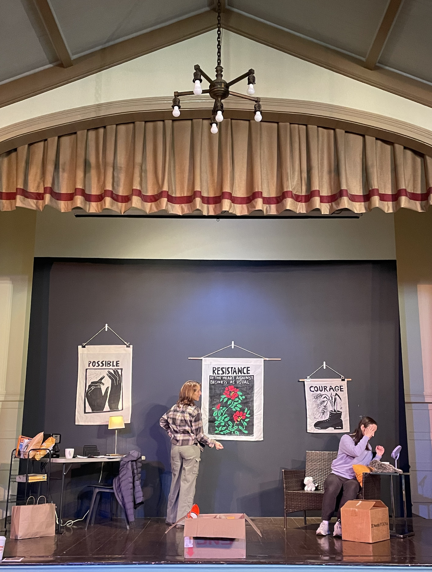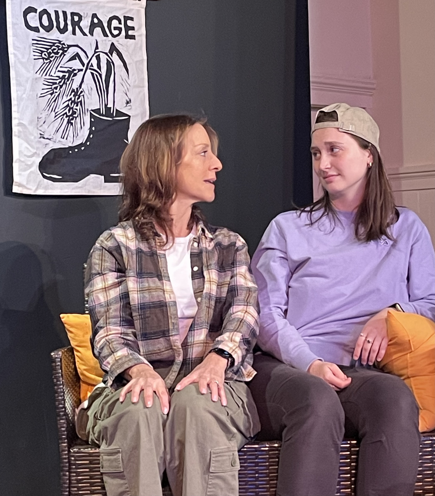 Michelle Mallardi and Emily Barkovic perform Jack GIlroy’s Reap! in Fellowship Hall at the Unitarian Church of Staten Island on Saturday, March 21st as a benefit for Peace Action of Staten Island. Sally Jones (pictured at right) facilitates the talkback. We are grateful to all who attended the show and participated in the talkback.